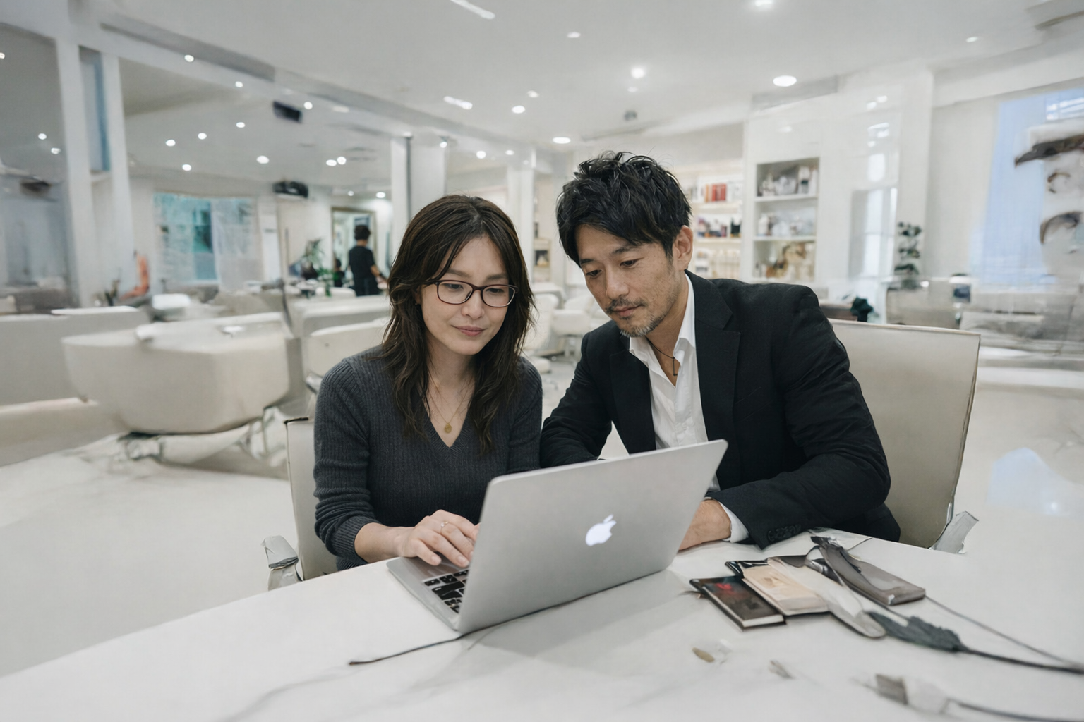 「今の自店の悩み」に合わせて、入会時にメインの担当者(窓口)を選んでいただきます。裏側では2人が連携してサポートするため、技術と戦略の両輪が得られます。